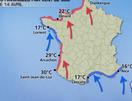Lorsque le flux s’oriente au sud sur la France, nos côtes ne sont pas toutes placées à la même enseigne sur le plan des températures.