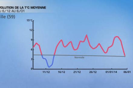 Difficile dans ces conditions de retrouver un tapis blanc de carte postale : il ne gèle pas en-dessous de 2.000 mètres la nuit dans nos massifs, à l’exception des vallées les plus abritées des Alpes. Même chose pour nos voisins nordiques dont les capitales n’ont pas vu la neige ou le verglas depuis début décembre. Oslo a ainsi vécu son Noël le plus doux jamais enregistré depuis les premières mesures météorologiques en 1973. Le Père Noël a également eu chaud au Danemark avec une température maximale de 11,6°C le 24 décembre. Le dernier mois de 2013 a été l’un des plus doux de ces cent dernières années dans les pays nordiques. "L’Europe devrait toutefois renouer dans les prochains jours avec des températures plus conformes aux normales de saison, annonce Pierre Huat. Le week-end prochain, nous attendons des valeurs qui s'échelonneront de 6°C dans le nord est à une douzaine de degrés au bord de la Méditerranée." A mesure que les températures remonteront en Amérique du Nord, elles baisseront donc en Europe. Ce changement de temps devrait être marquant à partir du 15 janvier avec la remontée des pressions sur la Scandinavie et donc une arrivée d'air sec et froid qui freinerait la progression des perturbations douces et humides venues de l'ouest.