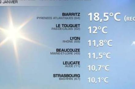 Une même origine mais deux effets contraires. La dépression qui glace les Etats-Unis a généré des vents de sud-ouest, tempérés par leur traversée océanique, sur la majeure partie du continent européen. En météo « rien ne se perd, rien ne se créé, tout se transforme » : après avoir refroidi l’Amérique, l’air glacial s’évacue vers l’Atlantique et provoque un conflit de masses d’air avec la douceur humide de l’océan. Une dépression toute neuve apporte alors en Europe un temps anormalement perturbé et humide, balayé par des coups de vent à répétition, et un mercure bloqué à des niveaux presque printaniers. Ainsi, la température minimale enregistrée la nuit dernière à Biarritz, dans les Pyrénées Atlantiques, est de 18,2°C. « Nous sommes à 1,4°C du précédent record pour un mois de janvier : 16,8°C en 1991, observe Pierre Huat, prévisionniste pour Météo Consult. Cette température minimum exceptionnelle correspond même au record de température maximale pour un 9 janvier, enregistré en 2005. » Et grâce à un effet de foehn sur les Pyrénées, c’est toute la côte basque qui profite d’un air très doux avec 18,3°C ce jeudi à la Pointe de Socoa, 16,9°C à Capbreton et même 19°C à Bustince dans l’intérieur des terres. Sur l’ensemble de l’hexagone, cette vague de douceur est remarquable aussi bien par sa durée que par son intensité avec des valeurs supérieures de 5 à 10°C aux normes de saison depuis un mois.