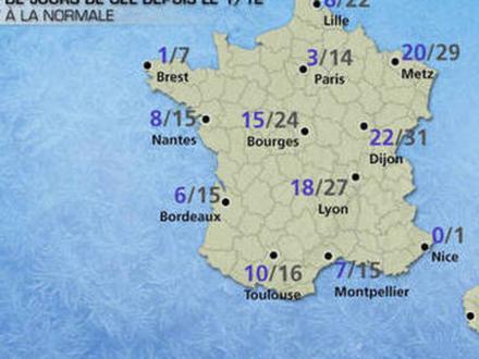 L’hiver 2013-2014 n’est pas prêt de revêtir son manteau blanc en raison de la prédominance de flux d’ouest perturbés qui favorisent les épisodes tempétueux, sous des masses d’air douces et humides venues de l’océan. « Les nuits étoilées combinées à l’absence de vent furent peu nombreuses donc cela n’a pas permis de refroidissement important en plaine », explique Cyrille Duchesne, chargé des bilans mensuels pour Météo Consult. Les jours de gelées en décembre et janvier sont donc nettement inférieurs à la normale calculée sur la période 1981-2010. Il n’y a eu aucun jour de gel à Ajaccio contre 5 habituellement, 3 jours à Paris pour une moyenne de saison de 14 et seulement 8 sur une moyenne de 22 jours à Lille. La situation est encore plus marquante pour la neige où les flocons ne sont tombés que dans le nord-est de la France : une journée à Metz et Dijon alors que les moyennes sont de 11 jours dans ces deux villes. La moyenne des jours de neige pour janvier et décembre est de 5 jours à Paris et 2 à Brest ou Toulouse, trois villes qui n'ont vu aucun tapis blanc cet hiver. Il faut remonter à 2007 pour retrouver une telle absence de neige en plaine. « Mais la situation s’améliore pour les stations de ski, nuance Cyrille Duchesne. Si la neige a fait défaut en montagne en première partie d’hiver, elle a fait son retour à basse altitude et les sols blanchissent désormais dès 600 à 800 mètres sur la plupart des reliefs. »