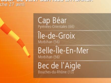 En Méditerranée, après un samedi assez agréable, une forte dégradation des conditions s'est mise en place dans la nuit de samedi à dimanche avec un passage rapide pluvieux. Dimanche matin, on retrouvait ces pluies entre la côte d'Azur et le littoral corse. A l'arrière, la tramontane se lève et se renforce rapidement, pouvant atteindre les 130 km/h en rafale sur le cap Béar et 90 km/h vers Leucate. Le mistral et le vent d'Ouest se réveillent sur la côte provençale, avec des rafales qui avoisinent les 90-100 km/h sur les îles du Levant dimanche à 15h.