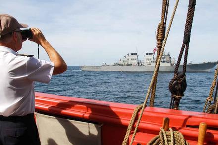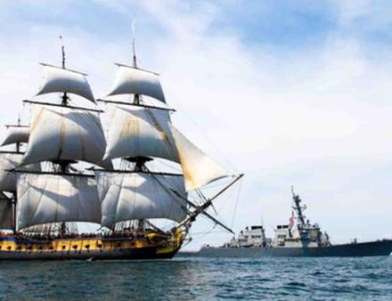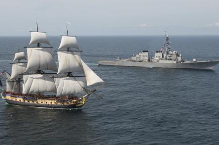 Après un mois de navigation depuis son départ des Canaries, L’Hermione vient d’achever sa première traversée de l’Atlantique et s’apprête à fêter sa première rencontre avec le peuple américain. Après une halte administrative à Norfolk, la frégate fera officiellement escale demain à Yorktown. Un chapitre chargé en symboles. En effet, c’est à l’entrée de la Baie de Chesapeake (Caps de Virginie) qu’une bataille navale déterminante s’est déroulée le 5 septembre 1781, opposant les 24 vaisseaux de ligne français du lieutenant-général de Grasse à la flotte anglaise de l’amiral Graves. Le succès éclatant de la marine française y prépare la chute de la ville de Yorktown où les troupes anglaises s’étaient enfermées. Assiégé par l’armée americano-française commandée par Washington, lord Cornwallis capitule finalement à Yorktown le 19 octobre 1781. Un épisode décisif de la guerre, à la fois sur terre et sur mer, auquel L’Hermione a pris part dès la fin septembre 1781.