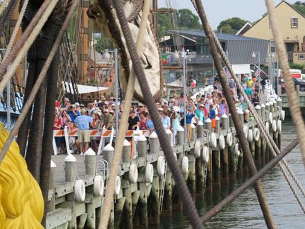 En escale à Greenport depuis hier, à quai à côté du Sagres, trois-mâts barque portugais, L’Hermione va reprendre la mer pour poursuivre son voyage américain. L’équipage s’apprête à saluer chaleureusement le public venu en nombre pour lui rendre hommage, en témoignent les 3 100 visiteurs comptabilisés sur une seule journée. Dans quelques heures, la réplique de la frégate de La Fayette fera relâche à Newport, dans l’état de Rhode Island. Port stratégique lors de la guerre d’indépendance américaine, Newport est aussi une référence, aux Etats-Unis et dans le monde entier, pour tous les passionnés de voile.