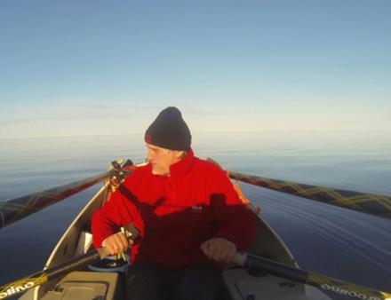 « Je viens de tourner le point le plus au nord de mon voyage, à 74 degrés nord, dans le détroit de Lancaster, a expliqué le Lyonnais de 57 ans. Je suis à 250 km de l'arrivée environ, et maintenant il me reste au mieux 3 ou 4 jours de rame, au pire une dizaine de jours ». Ce sera le dénouement d'une aventure de quelque 6000 km débutée à l'été 2013 et interrompue par deux fois par le retour des glaces.