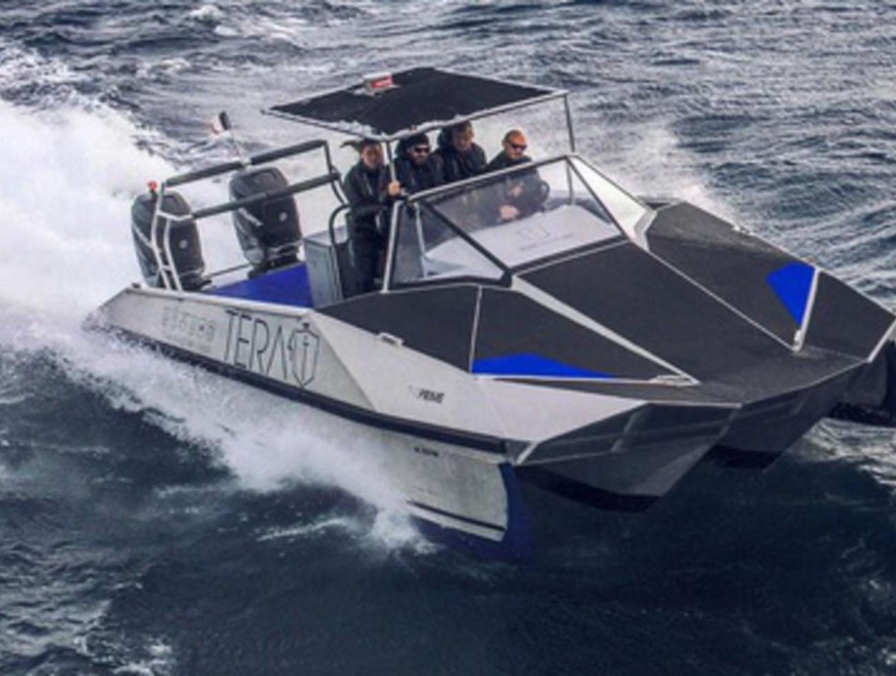Le T-9 Prime peut atteindre une vitesse de pointe de 55 nœuds (plus de 100 km/h), grâce à l'optimisation de la puissance de ses moteurs (ici 2 x 600 ch) .