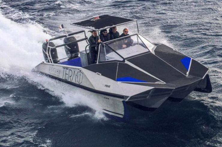 Grâce au « ground effect » ou "effet de sol", le bateau Tera-4 surfe à fleur d'eau sur ses 4 segments de coques, à plat, sans roulis ni tangage. Autre avantage, il peut effectuer un arrêt d'urgence à pleine vitesse.