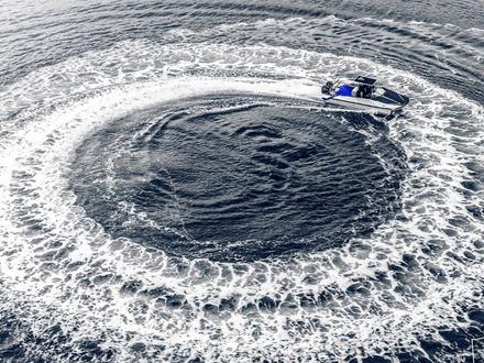 Effet Waveless : le bateau glisse sur l'eau et ne génère quasiment pas de vague latérale, mais une seule trainée à l’arrière, ce qui lui permet de naviguer en rivière ou en lac, car il peut être très discret.