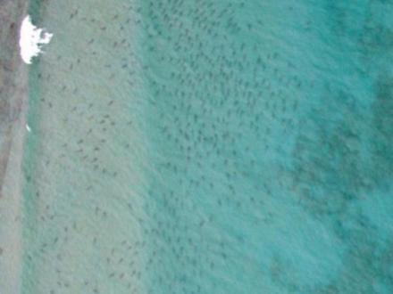La Florida Atlantic University (FAU) étudie la migration des requins à pointes noires. Et d'après le profresseur de biologie Stephen Kaijura "Il y a des dizaines de milliers de requins à un jet de pierre du rivage. Vous pouvez littéralement lancer un galet et blesser l'un d'entre eux. Ils sont aussi près que ça".