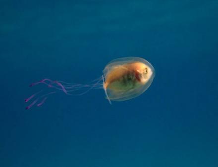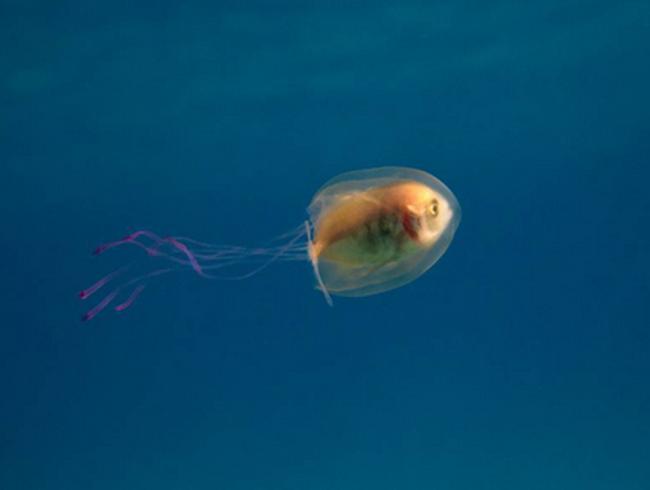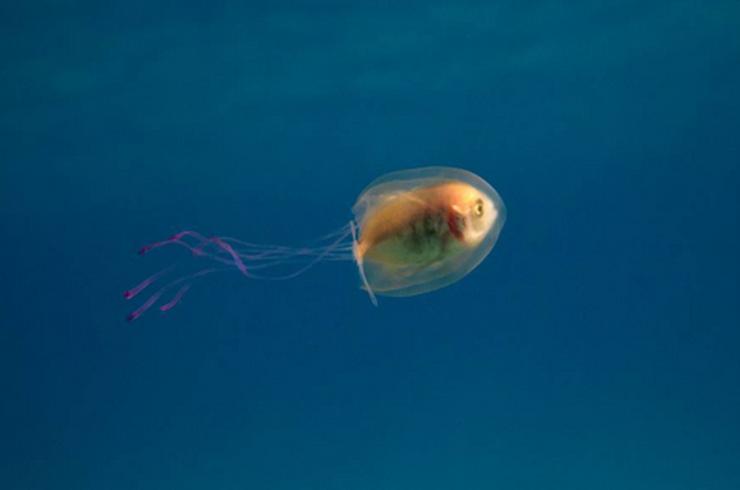 Tim Samuel est photographe et amoureux de l'océan avant tout. Il immortalise toutes ses sorties en mer et ses plongées. Il y a quelques mois à Byron Bay en Australie, le jeune homme a assisté à une scène incroyable : un tout petit poisson coincé dans une méduse transparente. Et le plus étonnant, explique-t-il sur son compte Instagram, était que le poisson arrivait à contrôler les déplacements de la méduse, comme si de rien n'était.