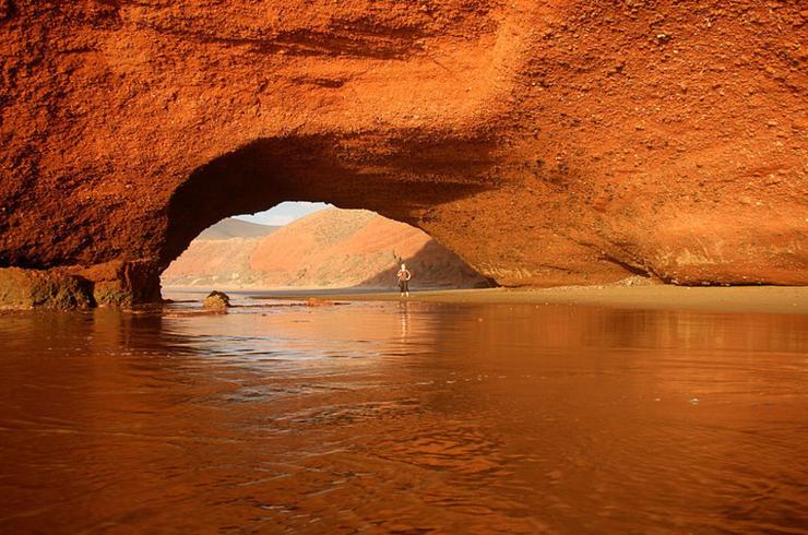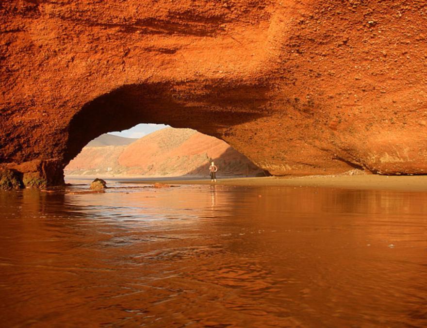 Legzira est située dans le sud du Maroc, près de la localité de Sidi Ifni, au sud d'Agadir.
