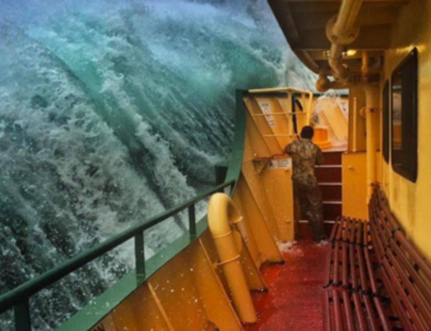 Travaillant sur le ferry en question, ce n'est pas la première fois que le photographe capture des images de tempêtes, depuis les 10 dernières années mais celle-ci fut particulièrement puissante.