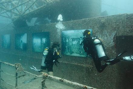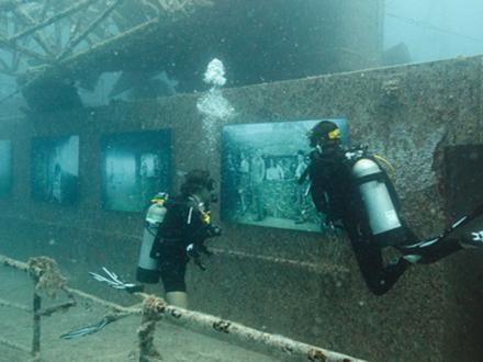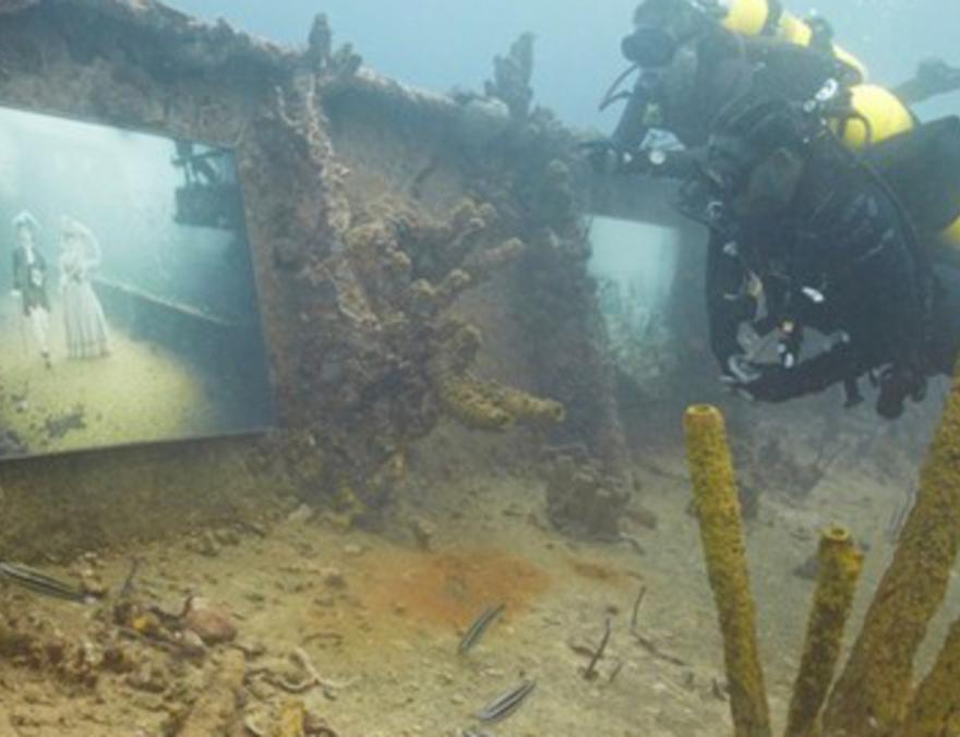 Après le Museo Atlantico aux îles Canaries, découvrez l'exposition "Sinking World" en Floride, au coeur du parc national marin de l'archipel des Keys. Le photographe Andreas Franke a installé une douzaine de photos sur l'épave d'un bateau à 27 m de profondeur. Il s'agit de l'épave du Vanderberg, un ancien navire de la marine américaine datant de la Seconde Guerre Mondiale et coulé volontairement en 2009 pour créer le deuxième plus grand récif artificiel du monde.