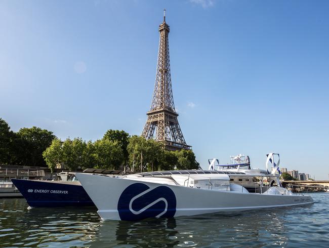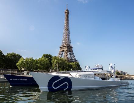 Mardi 4 juillet, Energy Observer, premier navire hydrogène autour du monde, est arrivée à Paris, première escale de son Odyssée pour le futur. Le catamaran mené par Victorien Erussard, capitaine, et Jérôme Delafosse, chef d’expédition, sera baptisé ce jeudi 6 juillet, à 16h30, au port du Gros Cailloux (Paris 7è), en présence de Nicolas Hulot, Ministre de la Transition écologique et solidaire et parrain d’Energy Observer, Anne Hidalgo, Maire de la ville de Paris, Florence Lambert, Directrice du CEA-Liten et marraine, et Bertrand Picard, Président de la Fondation Solar Impulse.