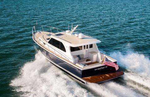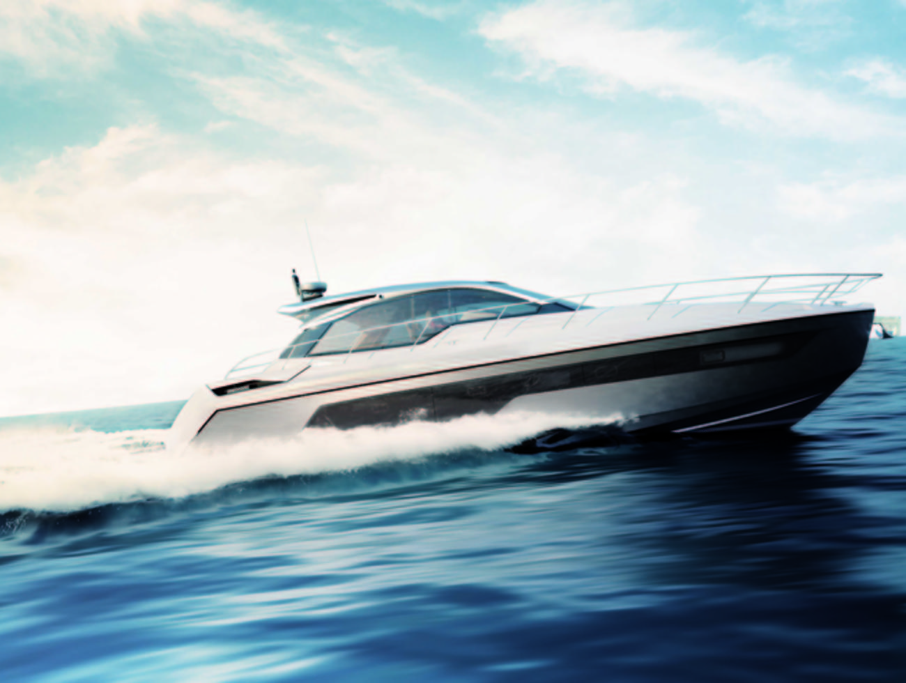 Côté motorisation, elle est la même que l'Azimut Atlantis 51 avec deux Volvo 800 ch, mais avec une transmission en ligne d'arbre ici, propulsant alors le bateau à une vitesse maximale de 31 noeuds.