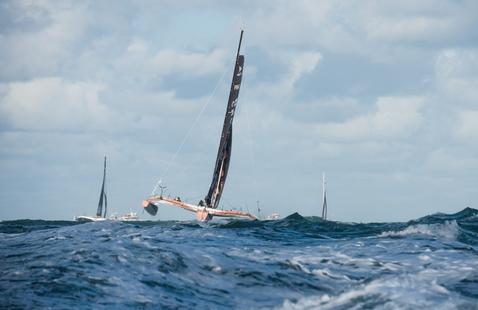 Gabart a amélioré jeudi de 1 h 38 min le temps de référence entre Ouessant et le cap de Bonne-Espérance (11 j 20 h 10 min), détenu par Loïck Peyron (Banque Populaire V) lors de son tour du monde en équipage 2011/2012 (Trophée Jules-Verne).