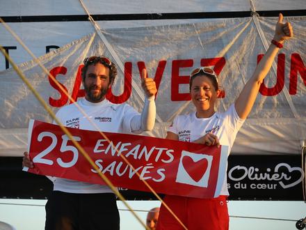 Tanguy de Lamotte et Sam Davies terminent ce parcours théorique de 4 350 milles (8 056 km) entre Le Havre et Salvador de Bahia à la 6ème place sur l'IMOCA aux cœurs géants, après avoir essayé, en vain, de rattraper le tandem Kito de Pavant / Yannick Bestaven qui, ironie du sort, naviguent à bord de l'ancien Initiatives-Cœur. Chaque course est l'occasion d'une grande campagne de sensibilisation au cours de laquelle les deux principaux sponsors du bateau, K-LINE et Initiatives financent par leurs dons à l'association Mécénat Chirurgie Cardiaque, des opérations d'enfants souffrant de graves malformations cardiaques. Depuis l'ouverture du village départ au Havre, les internautes ont participé à un véritable challenge 2.0 consistant à réunir un maximum de "J'aime" et de "Partage" de la page Facebook Initiatives-Coeur. « On ne s'y habitue pas, la mobilisation autour de ce projet est incroyable et fait chaud au coeur. L'objectif sur cette transat était de pouvoir financer 15 opérations, mais aujourd'hui l'engouement du public est tel que ce chiffre a dépassé nos espérances. » a déclaré Tanguy de Lamotte. En effet, grâce à cette opération, vingt-cinq enfants vont pouvoir être sauvés !