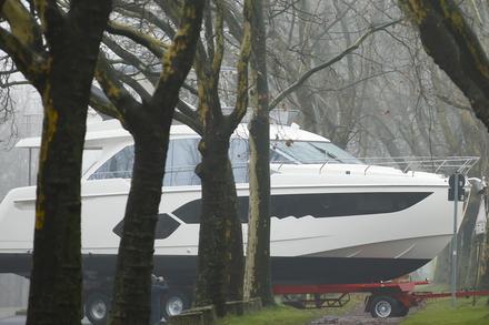 Le deuxième yacht est également un Absolute, le 58 Fly. A 10h, le yacht de 17,2 mètres de long a rejoint son emplacement et sera vendu à partir de 1,23 millions d'euros.