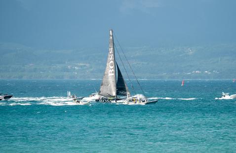 Suite au chavirage de son trimaran Arkema sur la Route du Rhum – Destination Guadeloupe il y a 48 heures, Lalou Roucayrol a été secouru ce matin par Pierre Antoine (Olmix) qui s’était dérouté pour lui porter assistance. En tête de sa catégorie des Rhum Multi, Pierre Antoine a mis sa course entre parenthèses pour venir porter assistance au skipper d’Arkema. Le trimaran Olmix se dirige désormais vers Pointe-à-Pitre.