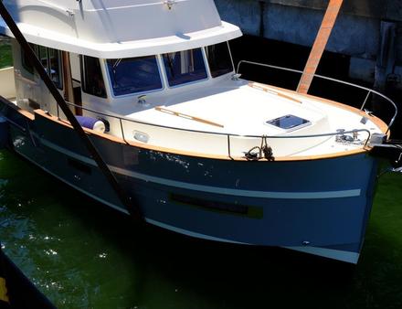 Il restera alors une dernière étape cruciale au Trawler 34 : l'homologation CE. Elle porte sur un registre aussi large que l’échantillonnage de construction, la conformité des équipements à bord, les systèmes de lutte contre le feu, d'évacuation d'eau, l’électricité, etc. Présentation officielle au prochain Grand Pavois de La Rochelle en septembre.