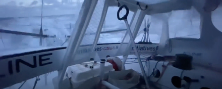 Vidéo Sam Davies : rafales à plus de 40 noeuds, les vagues passent par-dessus bord !