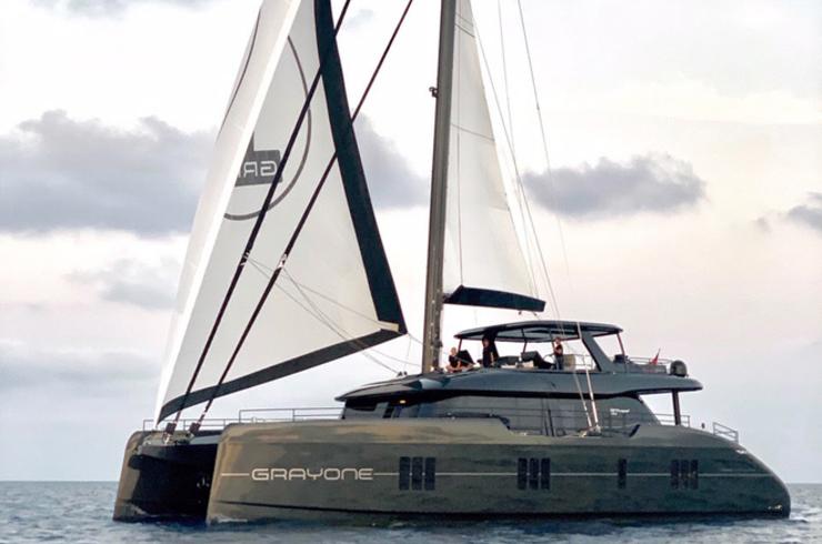 Sunreef Yachts dévoile les images du luxueux Sunreef 80 Grayone. Ce superbe multicoque sur mesure affiche une présence imposante et un style raffiné avec sa coque et sa superstructure gris anthracite. Ses intérieurs sur mesure et ses espaces de détente en plein air exceptionnels offrent un confort suprême que ce soit pour les escapades privées ou les charters haut de gamme.