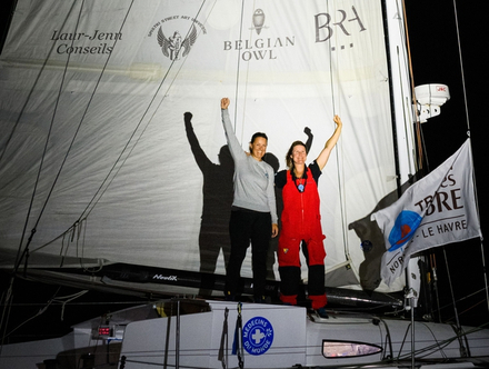 Le dimanche 5 décembre 3 heures 50 minutes du matin heure française, Morgane Ursault Poupon et Julia Virat ont franchi la ligne d’arrivée de la Transat Jacques Vabre à bord du Class40 UP Sailing. Le duo aura mis 27 jours 14 heures 23 minutes et 46 secondes pour parcourir les 4600 milles théoriques entre Le Havre et Fort-de-France.