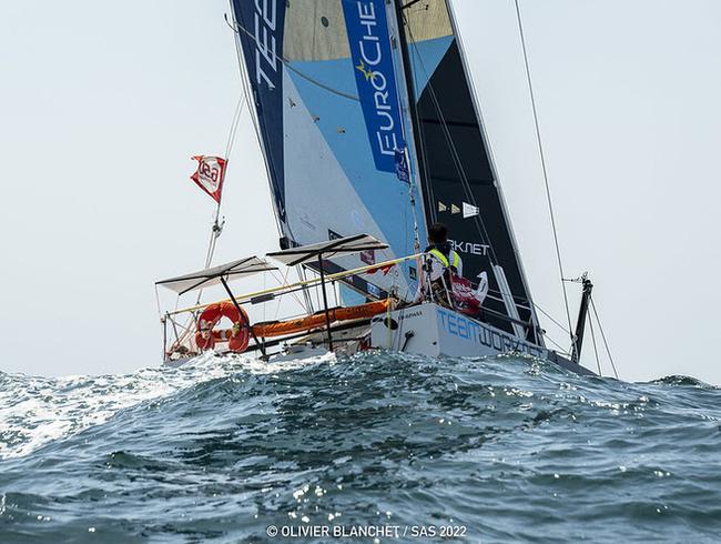Aussi, si ces derniers composent encore avec un flux de sud-ouest, les autres évoluent maintenant dans un vent de secteur nord nord-ouest. Un vent qui reste toutefois faible puisqu’il peine à dépasser les 6-7 nœuds, mais aussi et surtout qui souffle de manière très irrégulière. Les solitaires doivent donc s’adapter à ces différences de pression et rester concentrés sur leurs réglages pour grappiller ce qui peut l’être et se rapprocher du but. « Comme attendu, la journée va être délicate dans ce vent mou et mal établi », explique Christian Dumard, le consultant météo de l’épreuve. Selon les derniers fichiers, à partir de la nuit prochaine, la situation devrait heureusement s’améliorer doucement, en tous les cas dans un premier temps pour le leader, Pierre Le Roy (1019 – TeamWork). Ce dernier devrait, en effet, retoucher davantage de pression dans les 150 milles avant l’arrivée. Petit bémol, il se retrouvera au près. A date, son arrivée est ainsi estimée en en fin de journée de mercredi avec, a minima, une avance d’une quinzaine d’heures sur son dauphin. « Un nouveau front - pas très actif toutefois -, est prévu de passer sur le reste de la flotte dans la journée du 27. Pour le gros du peloton, l’étape va se finir avec du vent de nord-ouest pas très fort et qui pourrait avoir pour effet de resserrer la flotte aux abords de l’archipel », note Christian. De quoi rajouter un peu de piment, notamment chez les bateaux de Série où le match est ultra serré entre les deux leaders, Léo Bortorel (987 - Les Optiminites – Secours Populaire 17) et Jean Marre (991 – Sport dans ma ville – Time for the planet), mais aussi à tous les étages. A noter par ailleurs : Anne-Gaël Gourdin (679 – Roll my chicken) a indiqué à la Direction de course s’être brulée avec son Jet-boil. La navigatrice, qui pointe actuellement en 3e position chez les Protos, poursuit malgré tout sa course avec une vitesse et un cap normaux.
