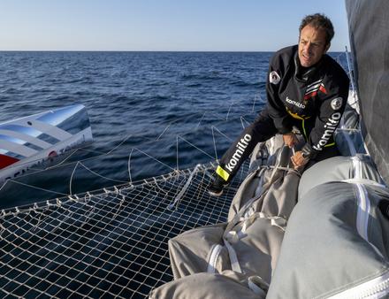 Le skipper de Komilfo, actuellement 5e, continue d’être dans le match au sein de la flotte des Ocean Fifty. En optant pour une trajectoire plus Sud que ses rivaux, il espère pouvoir faire la différence sur cette Route du Rhum-Destination Guadeloupe. Malgré la fatigue, Éric Péron se montre particulièrement combatif. Il raconte.