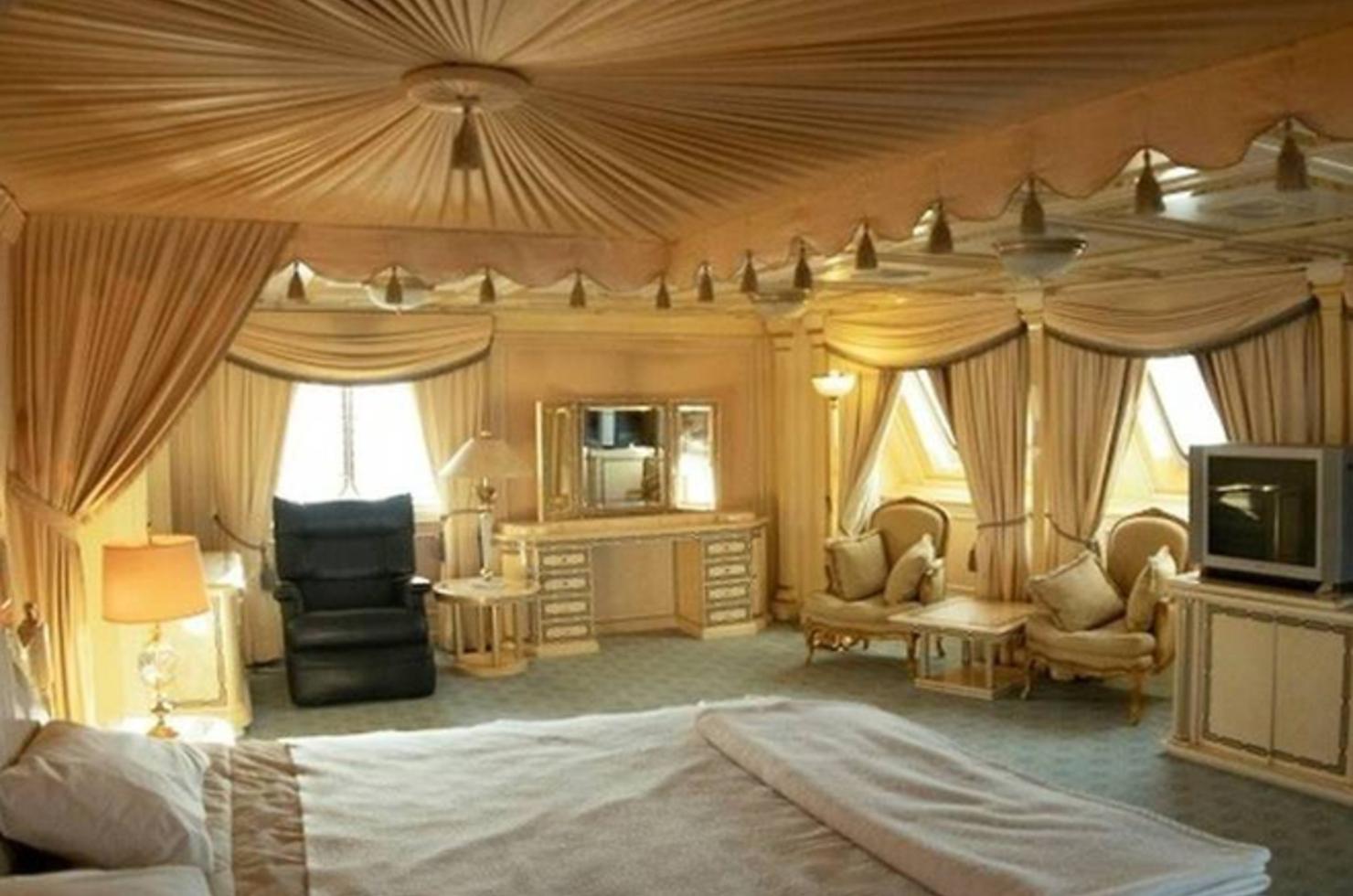 Dans un salon, un fauteuil de barbier attend le client. Dans la suite présidentielle aux tons crèmes et dorés, un lit king size dominé par un baldaquin fait ménage avec des fauteuils imitant le style XVIIIe. Dans les salles de bains, la robinetterie est en or.