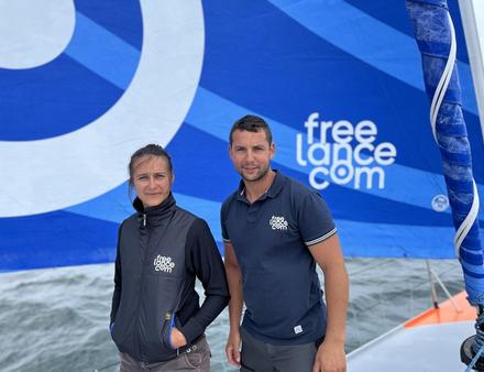 Dans son apprentissage express, Guirec peut aussi bénéficier des conseils de « Bilou » Jourdain, son co-skipper lors de la prochaine Transat Jacques Vabre. Ils s’appellent régulièrement et multiplieront les navigations en août prochain. « J’ai hâte d’être au large et de naviguer », sourit Guirec. Pour le skipper et toute l’équipe Freelance.com, le contre-la-montre n’est donc pas prêt de s’arrêter.