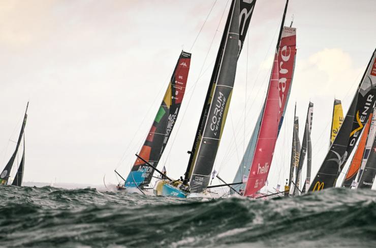 Le vent semble rester maniable et tour à tour, les foilers larguent les ris. C’est sous grand-voile haute et J2 que l’essentiel des leaders se présentent sur la ligne. Une ligne très longue qui permet aux plus expérimentés de ne pas se faire enfermer au bateau comité et de partir lancés. C’est le cas de Charal mené par le duo de choc Beyou-Cammas qui pointe en tête, suivi de près par Initiatives Cœur (Davies-Boutell) et Maître CoQ V (Bestaven-Pulvé). Plus au vent, Bureau Vallée (Beaudart-Comagnac) et Groupe Apicil (Seguin-Bourguès) foncent dans un mouchoir et sont dans le coup. Dans le camp des bateaux à dérives, qui progressent tous sous un ris, la palme du meilleur départ revient au binôme de Lazare (Le Turquais- De Navacelle), suivi de près par DeVenir (Dorange-Guillou).