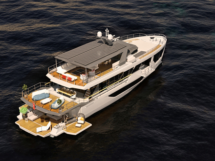 Pour ceux qui souhaitent aller sur l'eau, trois plates-formes rabattables augmentent l'espace de pont disponible dans le club de plage à 43 mètres carrés. Une soute à annexe à chargement latéral peut également accueillir une annexe de 6,25 mètres.