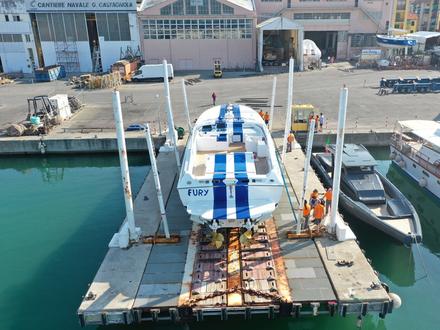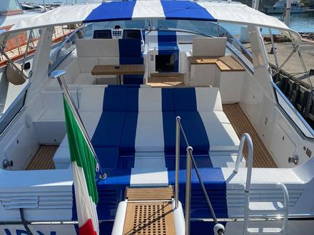 "Le bateau était en excellent état malgré les nombreuses années de stockage", explique Tommaso Spadolini. "Mais le travail nécessaire pour le remettre à flot a été considérable : la contribution professionnelle du chantier naval C.A.R.M. et l'engagement de son propriétaire Marco Poerino méritent certainement d'être mentionnés. Le propriétaire (et ses enfants) sont très grands et des changements substantiels ont été nécessaires dans les espaces communs intérieurs et extérieurs. Ainsi, en plus de quelques opérations de laminage sur le fond, les intérieurs et la salle des machines ont été entièrement rénovés. Nous avons ensuite supprimé une main courante disgracieuse pour retrouver la clarté des lignes originales de Pininfarina".