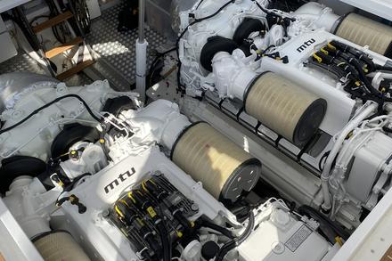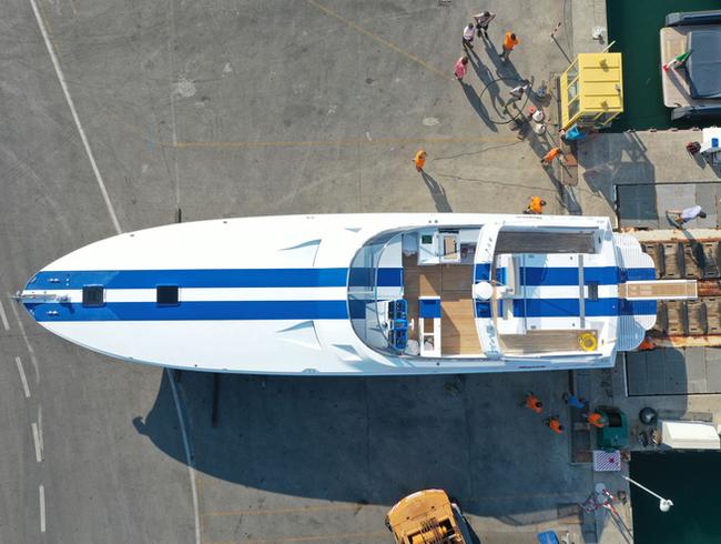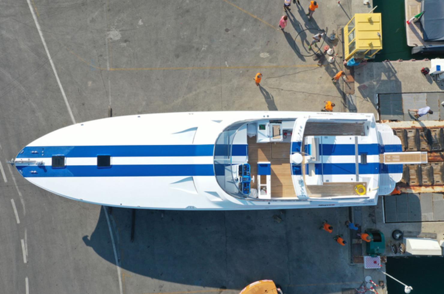 Le Magnum 63 est l'un des modèles les plus emblématiques du chantier naval américain Magnum Marine. Le yacht a une longueur totale de 19,20 mètres et une largeur maximale de 5,20 mètres. Sa coque en V profond et sa transmission par hélice de surface Arneson sont les caractéristiques distinctives de ce modèle, qui est fier de ses véritables origines offshores : malgré sa taille, il peut se targuer d'une victoire record lors de la course Miami-Nassau en 1976. "Ce Magnum 63 était équipé de moteurs GM plus petits que les V12 MTU que nous avions décidé d'installer", explique Tommaso Spadolini. "La salle des machines et le pont supérieur étaient donc plus bas que le projet original qui nous a inspirés ; nous les avons rehaussés d'environ 20 cm. En outre, nous avons également prévu de relever légèrement l'arceau de sécurité, afin de l'adapter aux besoins du propriétaire. Nous avons décidé de conserver les transmissions Arneson, mais elles ont été envoyées aux États-Unis pour une révision complète". Avec la nouvelle motorisation composée d'une paire d'unités MTU 12V2000 (2 000 ch chacune), le Magnum 63 Fury, mis à l'eau à l'été 2022, a dépassé une vitesse de pointe de 55 nœuds, tandis que la vitesse de croisière se situe autour de 40 nœuds.