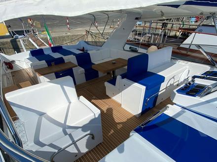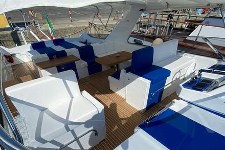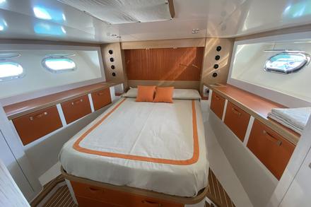 "Une intervention importante concernait les intérieurs", se souvient Tommaso Spadolini. "Le propriétaire voulait deux cabines spacieuses avec un lit de 205 cm de long dans la cabine principale. Cela nous a obligés à sacrifier la cabine de l'équipage qui se trouvait à l'avant et à la remplacer par un coffre pour les défenses et les lignes, en utilisant une partie de cet espace pour agrandir la cabine du propriétaire, qui est complétée par une grande salle de bains. Les invités sont accueillis dans la deuxième cabine, avec un lit à la française et une autre salle de bain de bonne taille (avec douche séparée). Il s'agit d'une intervention complexe, qui nous a amenés à supprimer certaines cloisons non structurelles et à procéder au remplacement de l'ensemble du mobilier".