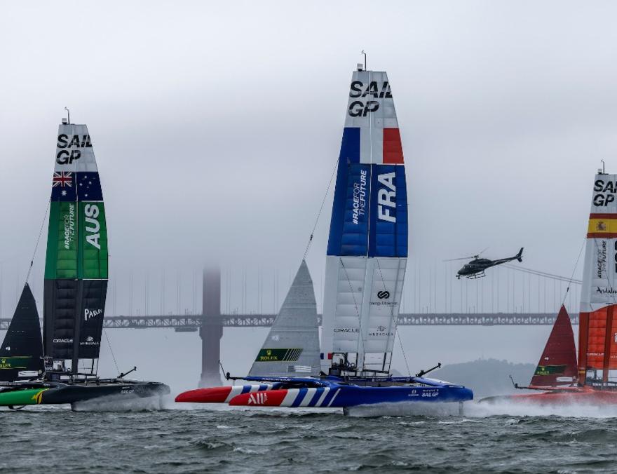 Tous les ingrédients étaient réunis pour que l’ouverture de ce Sail Grand Prix de San Francisco soit dingue ! Du vent fort (18-25 noeuds - 30-40 km/h), du courant, le brouillard accroché au Golden Gate Bridge et plus de 3 000 spectateurs en folie dans le 'race stadium’. Mais surtout beaucoup de suspense quant au dénouement de cette Saison 4 de SailGP avec, notamment, un match serré entre la France et l’Espagne pour le dernier ticket d’accès à la Grande Finale à 2 millions de dollars. Et pour pimenter le tout, une bonne dose de stress côté tricolore après la rupture d’un safran à l'entraînement hier, les privant d'entraînement avec le reste de la flotte et mettant leur capacité d’adaptation à l’épreuve.