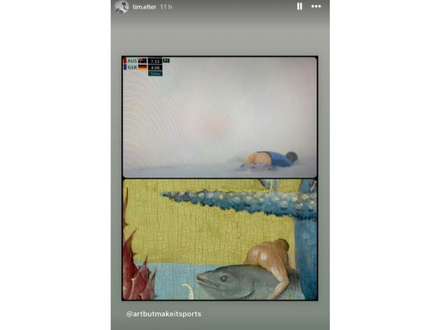 Dans sa story Instagram, le surfeur de 20 ans a même repartagé une photo de son postérieur à Tahiti comparé à une oeuvre d’art partagée par le compte humoristique @Artbutmakeitsports.