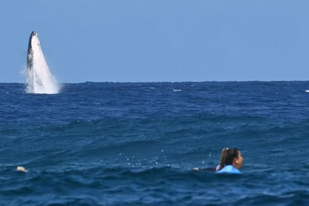 Lors des demi-finales de surf ce lundi 5 août, alors que les compétiteurs attendaient la vague, une baleine est venue leur tenir compagnie. L'animal marin est apparu dans le champ des caméras pendant la dernière demi-finale féminine opposant la Brésilienne Tatiana Weston-Webb à la Costaricienne Brisa Hennessy. Une scène tout simplement spectaculaire.