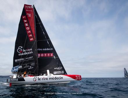 « On est super content de ce départ de Saint-Pierre et Miquelon. C’était cool de partir en tête dès le départ. Après on a eu une première partie de nuit pas facile avec pas mal de vent mou à cause de cette dorsale. On a viré et fait ensuite un peu de sud. Nous nous sommes retrouvés dans ce centre dépressionnaire qui génère de la pluie et des orages. C’était une situation assez loufoque : on s’est tous retrouvés au même endroit sans vent. Nous avons réussi hier à partir en premier dans du vent portant. On déboule désormais à plus de 22 noeuds de moyenne. Koesio et Solidaires En Peloton sont devant, et c’est parti pour de longues cavalcades ! »