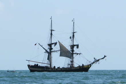 Construit en 1929, ce voilier d'origine danoise a une carrière cinématographique impressionnante. Il a incarné le Santa Maria dans le film « 1492 : Christophe Colomb » réalisé par Ridley Scott, sorti en 1992. Il est également apparu dans « Au coeur de l'océan » (2015) et plus récemment dans « Napoléon ». « Avec ses voiles carrées, il a tout pour évoquer un navire de pirate digne de Jack Sparrow », précise Yannick Arz, capitaine et président de l’association Les Voiles Oceane, propriétaire du navire.