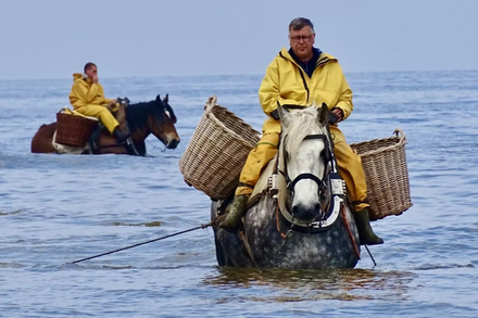 Dans la commune belge de Oostduinkerke, sur la mer du Nord, on pratique toujours la pêche aux crevettes à cheval.