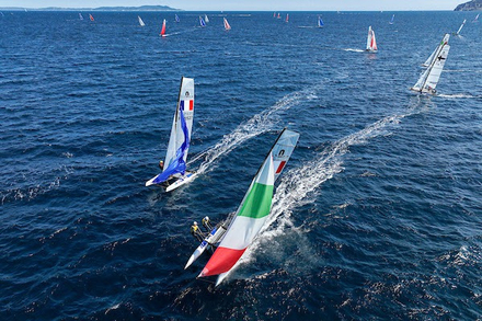 Le Championnat d’Europe de Nacra 17 clôture la saison de voile olympique. Du 06 au 10 novembre, les équipages de ces catamarans volants spectaculaires s’affronteront sur les eaux cristallines de Palerme en Sicile. Deux jeunes équipages français y participeront : le duo de la Gande Motte composé de Margaux Billy et Noah Chauvin d’une part, et du binôme aquitain Thomas Proust accompagné d’Eloïse Clabon d’autre part. Un championnat d’Europe qui donne le coup d’envoi d’une nouvelle olympiade qui promet d'être spectaculaire !