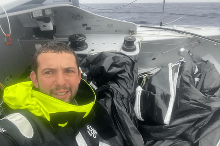 Guirec Soudée n’a pas eu d’autre choix que de plonger sous son bateau, dans une eau à 5 degrés, pour désengager le code 0 de sa quille. Une opération particulièrement délicate et à haut risque dans les eaux froides de l’Atlantique Sud et alors que le bateau était incontrôlable et dérivait vers la côte.