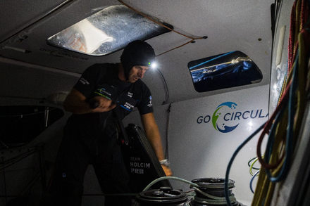 « Ce n’est pas vraiment le scénario que j’aurais choisi », reconnaît le skipper, actuellement au coeur d’une dépression d’une rare intensité. « Les conditions se sont durcies cette nuit. Ce qui est bien, la nuit, c’est qu’on ne voit pas l’état de la mer... Mais au lever du jour, c’était impressionnant : la mer est énorme, avec des vagues de 6 à 7 mètres, et j’ai entre 30 et 40 noeuds de vent. C’est beau, mais j’avoue que je serai soulagé quand tout cela sera derrière moi », raconte Nicolas dans un vacarme qui reflète la violence des éléments.