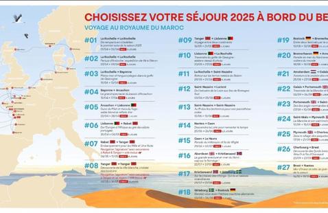Dès son départ de La Rochelle, le Belem entamera une saison dense avec huit grands rassemblements nautiques à son agenda. Parmi les étapes incontournables : le Salon Nautique d’Arcachon, Débord de Loire à Nantes, le Millénaire de Caen, les Tall Ships Races avec des escales au Havre, à Dunkerque et Aberdeen, ainsi que Hanse Sail Rostock, Sail Bremerhaven et Sail Amsterdam. Le trois-mâts fera également une halte à Calais pour l’événement Escale à Calais.
