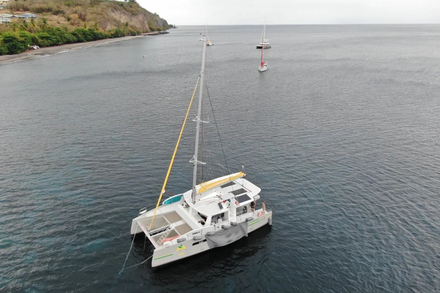 Ce catamaran Aventura 45DC, fraîchement mis en service, peut accueillir jusqu’à 28 passagers dans un confort haut de gamme. Son spacieux fly bridge et ses finitions élégantes séduisent au premier regard, mais c’est sa motorisation hybride qui fait véritablement la différence. Associant voile, propulsion électrique et panneaux solaires, Royal Mambo 2 incarne une nouvelle génération de navires alignés avec les objectifs de développement durable portés par l’État et les acteurs maritimes. Partenaire officiel du sanctuaire AGOA, dédié à la préservation des cétacés dans les Antilles françaises, ce catamaran ne se contente pas de naviguer : il s’inscrit pleinement dans une logique de respect de l’environnement marin.