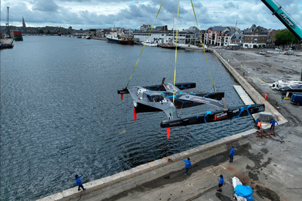 L’Ocean Fifty Solidaires En Peloton a été mis à l’eau à Saint-Malo hier après-midi. Suite à son chavirage fin 2024, le trimaran du navigateur malouin - guadeloupéen Thibaut Vauchel-Camus a subi un important chantier hivernal avec pas mal de modifications afin de le fiabiliser et l’optimiser. Sa décoration a également légèrement évolué, avec l'apparition de la couleur orange de la Fondation France Sclérose En Plaques, créée au printemps 2024.