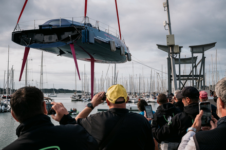 Depuis quelques jours, Armel Tripon avait des fourmis dans les jambes et son IMOCA tout juste achevé hâte d’être quillé pour, enfin, gagner la mer. Ce mardi matin, si le monocoque de 18,28 mètres à la robe colorée avait pu parler, il aurait certainement fait part de son émotion à voir ce collectif fort et soudé réunissant des marins, des techniciens, des soignants, des mécènes, autour de lui, pour assister à cette rencontre tant attendue avec l’élément liquide. En lieu et place, c’est son skipper, sourire vissé et regard pétillant qui exprimait sa fierté : " Deux années de travail, une somme d’énergies incroyables séparent le moment où l’on s’est dit "on construit un bateau en carbone ré-employé" et la fin de la construction marquée par cette mise à l’eau. Nous sommes passés d’une idée qui a séduit tout le monde à une difficulté énorme de construction, de recherche de financements, de doutes parfois et de travail acharné pour tenir les délais. Mais tout cela en valait la peine. Cette aventure rend les gens heureux et ça donne un peu d’utilité à tout ce projet. Ce n’est que du positif au final !".