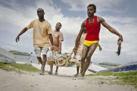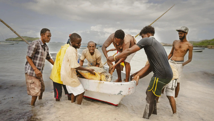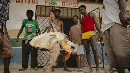 Portée par quatre hommes, la grosse tortue, tout juste hameçonnée par des pêcheurs, ne sait pas encore qu'elle sera soignée, pesée, baguée, puis relâchée en mer, un peu plus gaillarde. Comme l'ont été avant elle des milliers de ses congénères, protégées par l'ONG kényane Local Ocean Conservation.