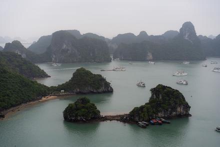 La Baie d'Halong, visitée par des millions de personnes chaque année, est l'une des destinations touristiques les plus populaires du Vietnam, réputée pour ses eaux bleu-vert et ses îles calcaires ornées de forêts tropicales.